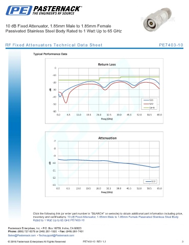 RF Fixed Attenuators Technical Data Sheet PE7403-10