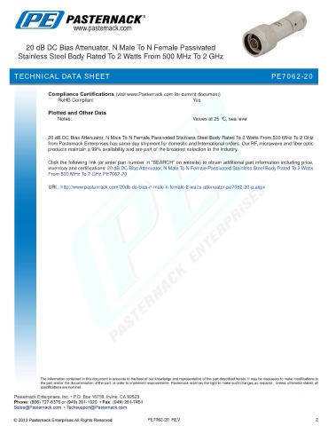 URL: http://www.pasternack.com/20db-dc-bias-n-male-n-female-2-watts-attenuator-pe7062-20-p.aspx