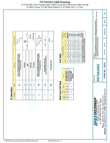 PE70A5003 CAD Drawing 31.5 dB With 6 Bit Programmable CMOS Controlled Attenuator, SMA Female to SMA Female, 0.5 dB Steps Rated to 0.32 Watts Up to 13 GHz PE70A5003 REV 1.0 10