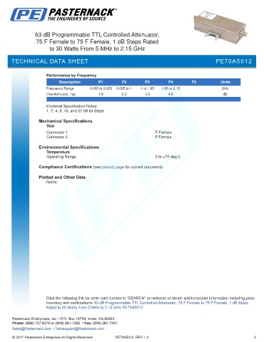 inventory and certifications: 63 dB Programmable TTL Controlled Attenuator, 75 F Female to 75 F Female, 1 dB Steps