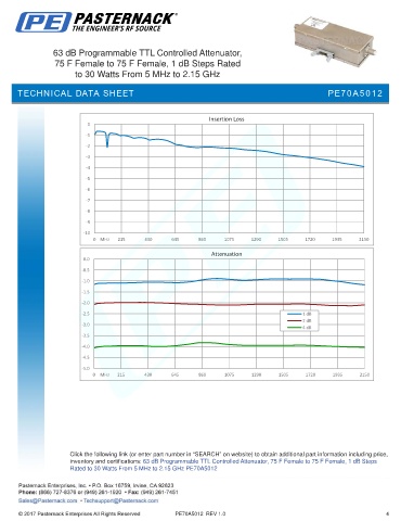 inventory and certifications: 63 dB Programmable TTL Controlled Attenuator, 75 F Female to 75 F Female, 1 dB Steps