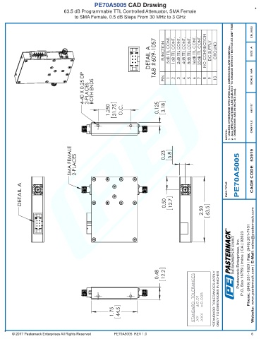 DETAIL A T&B #609-1057 FUNCTION .5dB TTL CONT. 1dB TTL CONT. 2dB TTL CONT. 4dB TTL CONT. 8dB TTL CONT. 16dB TTL CONT. 32dB TTL CONT. NO CONNECTION DC SUPPLY GROUND SIZE A