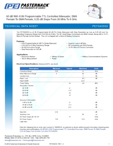 0.25 dB Steps From 30 MHz To 6 GHz PE70A5000