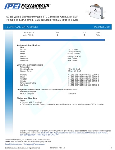 inventory and certifications: 60 dB With 8 Bit Programmable TTL Controlled Attenuator, SMA Female To SMA Female,
