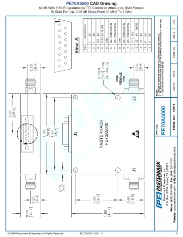 PE70A5000 CAD Drawing 60 dB With 8 Bit Programmable TTL Controlled Attenuator, SMA Female To SMA Female, 0.25 dB Steps From 30 MHz To 6 GHz PE70A5000 REV 1.0 8