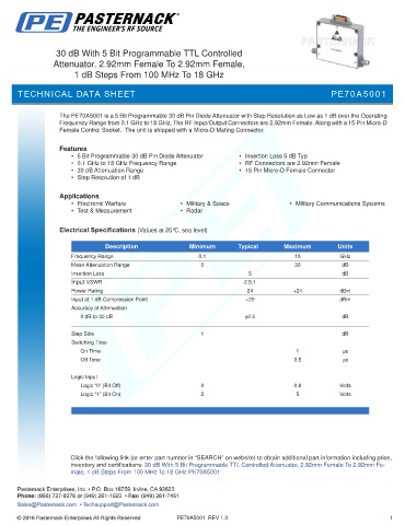male, 1 dB Steps From 100 MHz To 18 GHz PE70A5001