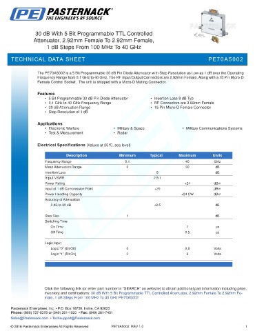 male, 1 dB Steps From 100 MHz To 40 GHz PE70A5002