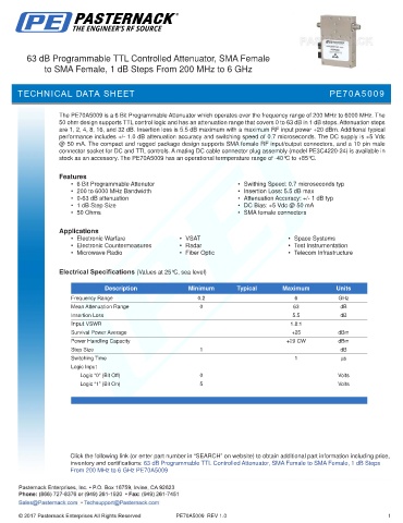 50 ohm design supports TTL control logic and has an attenuation range that covers 0 to 63 dB in 1 dB steps. Attenuation steps