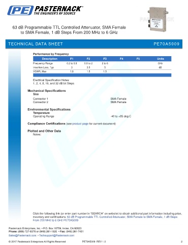 inventory and certifications: 63 dB Programmable TTL Controlled Attenuator, SMA Female to SMA Female, 1 dB Steps