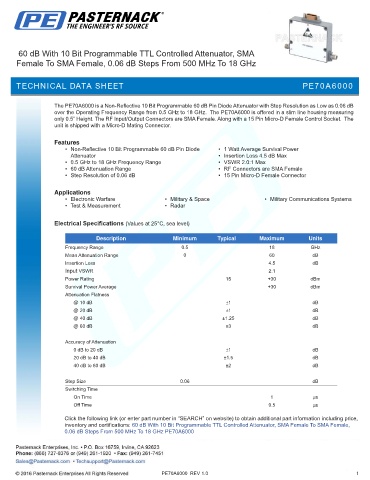 over the Operating Frequency Range from 0.5 GHz to 18 GHz. The PE70A6000 is offered in a slim line housing measuring