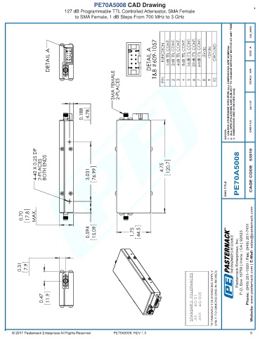 DETAIL A DETAIL A T&B #609-1057 FUNCTION 1dB TTL CONT. 2dB TTL CONT. 4dB TTL CONT. 8dB TTL CONT. 16dB TTL CONT. 32dB TTL CONT. 64dB TTL CONT. -5Vdc +5Vdc GROUND SIZE A