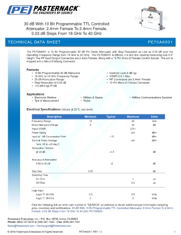 Female, 0.03 dB Steps From 18 GHz To 40 GHz PE70A6001