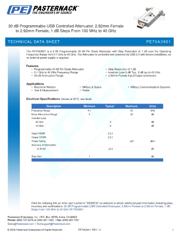 inventory and certifications: 30 dB Programmable USB Controlled Attenuator, 2.92mm Female to 2.92mm Female, 1 dB