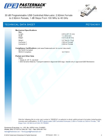 inventory and certifications: 30 dB Programmable USB Controlled Attenuator, 2.92mm Female to 2.92mm Female, 1 dB