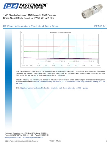 RF Fixed Attenuators Technical Data Sheet PE7003-1