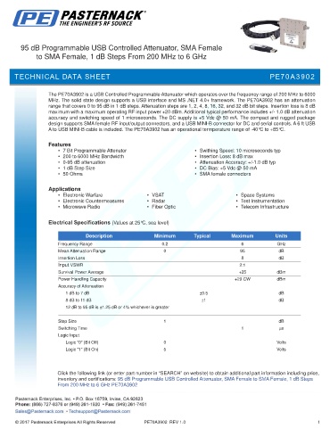 MHz. The solid state design supports a USB interface and MS .NET 4.0+ framework. The PE70A3902 has an attenuation