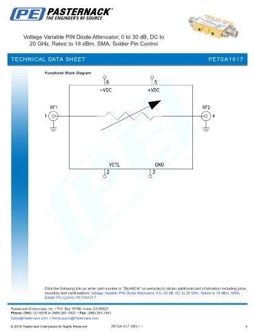any representation or warranty regarding the suitability of the part described herein for any particular purpose, and Pasternack does not assume any liability arising out of the use of any part or documentation.
