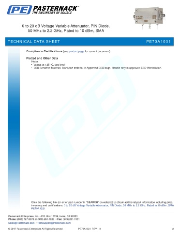inventory and certifications: 0 to 20 dB Voltage Variable Attenuator, PIN Diode, 50 MHz to 2.2 GHz, Rated to 10 dBm, SMA