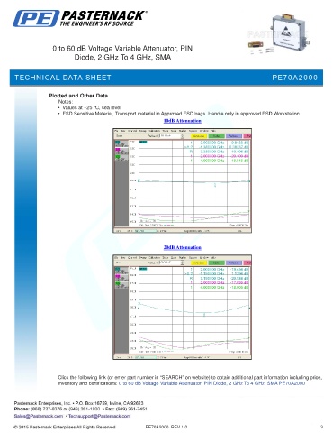 inventory and certifications: 0 to 60 dB Voltage Variable Attenuator, PIN Diode, 2 GHz To 4 GHz, SMA PE70A2000
