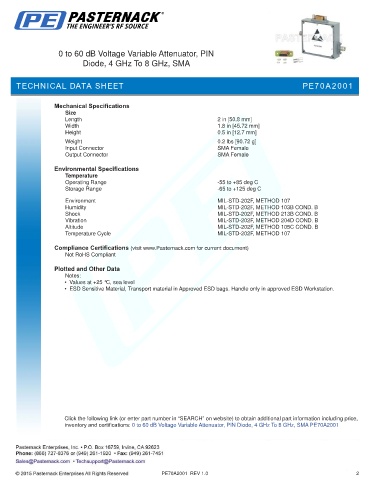 inventory and certifications: 0 to 60 dB Voltage Variable Attenuator, PIN Diode, 4 GHz To 8 GHz, SMA PE70A2001