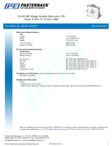 inventory and certifications: 0 to 60 dB Voltage Variable Attenuator, PIN Diode, 8 GHz To 18 GHz, SMA PE70A2003