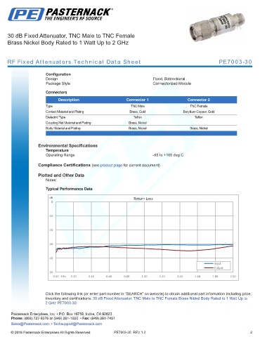 RF Fixed Attenuators Technical Data Sheet PE7003-30