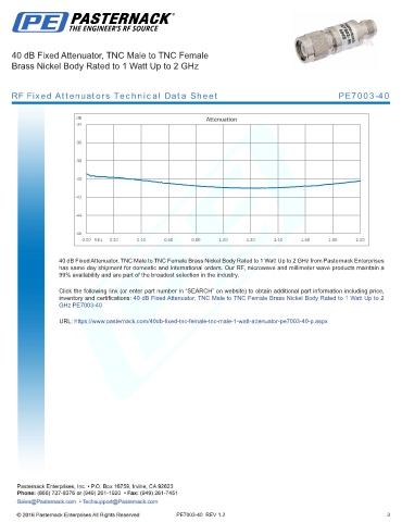 RF Fixed Attenuators Technical Data Sheet PE7003-40