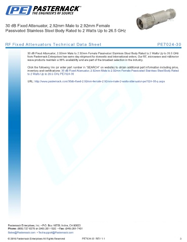 URL: http://www.pasternack.com/30db-fixed-2.92mm-female-2.92mm-male-2-watts-attenuator-pe7024-30-p.aspx
