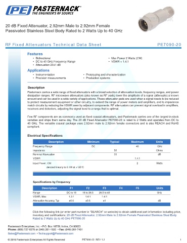 RF Fixed Attenuators Technical Data Sheet PE7090-20