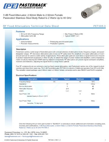 RF Fixed Attenuators Technical Data Sheet PE7395-3