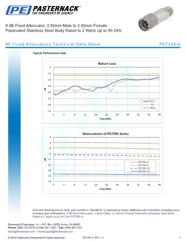 RF Fixed Attenuators Technical Data Sheet PE7395-9