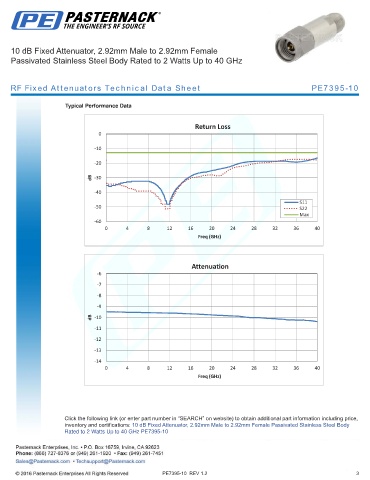 RF Fixed Attenuators Technical Data Sheet PE7395-10