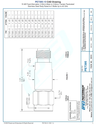 PE7395-10 CAD Drawing 10 dB Fixed Attenuator, 2.92mm Male to 2.92mm Female Passivated Stainless Steel Body Rated to 2 Watts Up to 40 GHz PE7395-10 REV 1.2 5