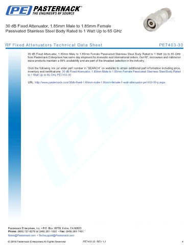 URL: http://www.pasternack.com/30db-fixed-1.85mm-male-1.85mm-female-1-watt-attenuator-pe7403-30-p.aspx