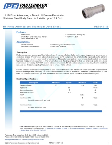 RF Fixed Attenuators Technical Data Sheet PE7047-15