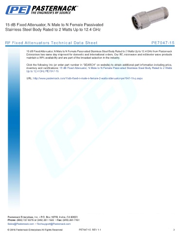 URL: http://www.pasternack.com/15db-fixed-n-male-n-female-2-watts-attenuator-pe7047-15-p.aspx