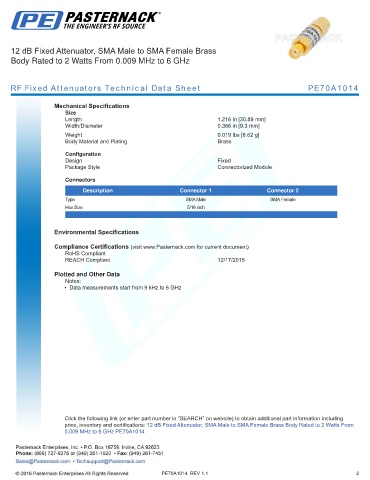RF Fixed Attenuators Technical Data Sheet PE70A1014