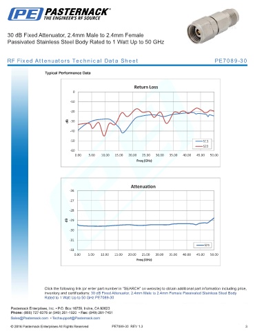 RF Fixed Attenuators Technical Data Sheet PE7089-30
