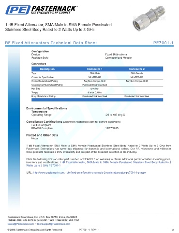 URL: http://www.pasternack.com/1db-fixed-sma-female-sma-male-2-watts-attenuator-pe7001-1-p.aspx