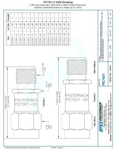 PE7001-2 CAD Drawing 2 dB Fixed Attenuator, SMA Male to SMA Female Passivated Stainless Steel Body Rated to 2 Watts Up to 3 GHz PE7001-2 REV 1.1 3