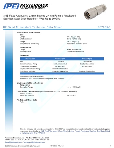 RF Fixed Attenuators Technical Data Sheet PE7089-3