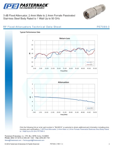 RF Fixed Attenuators Technical Data Sheet PE7089-3