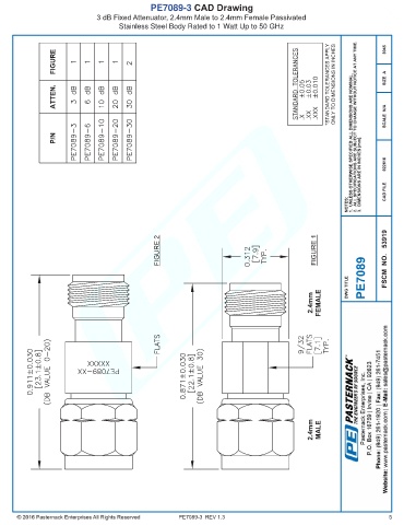 PE7089-3 CAD Drawing 3 dB Fixed Attenuator, 2.4mm Male to 2.4mm Female Passivated Stainless Steel Body Rated to 1 Watt Up to 50 GHz PE7089-3 REV 1.3 5