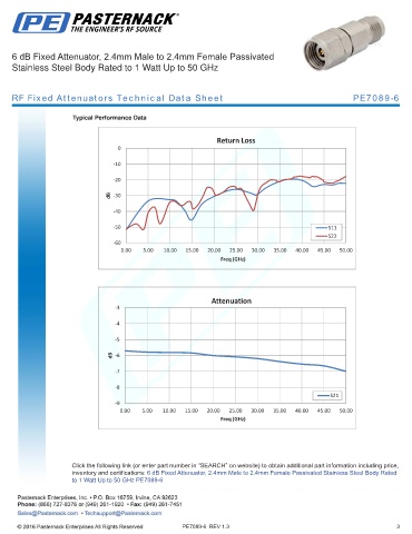 RF Fixed Attenuators Technical Data Sheet PE7089-6