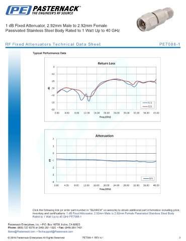 RF Fixed Attenuators Technical Data Sheet PE7088-1