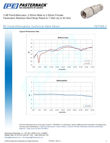 RF Fixed Attenuators Technical Data Sheet PE7088-3