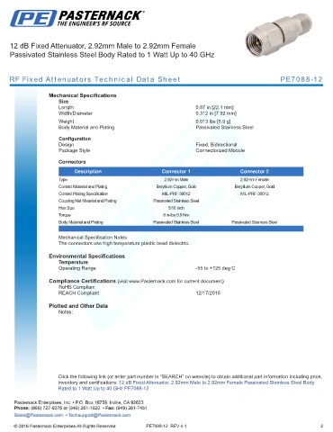 RF Fixed Attenuators Technical Data Sheet PE7088-12