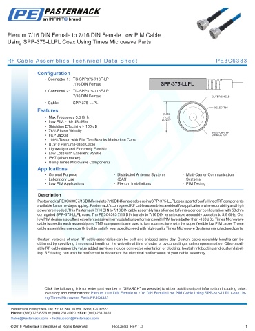 RF Cable Assemblies Technical Data Sheet PE3C6383
