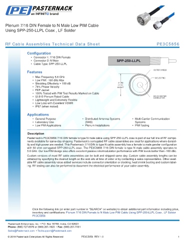 with 50 ohm corrugated SPP-250-LLPL coax. The PE3C5856 7/16 DIN female to type N male cable assembly operates to