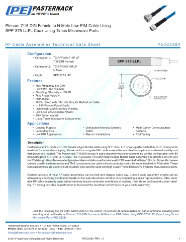 RF Cable Assemblies Technical Data Sheet PE3C6384